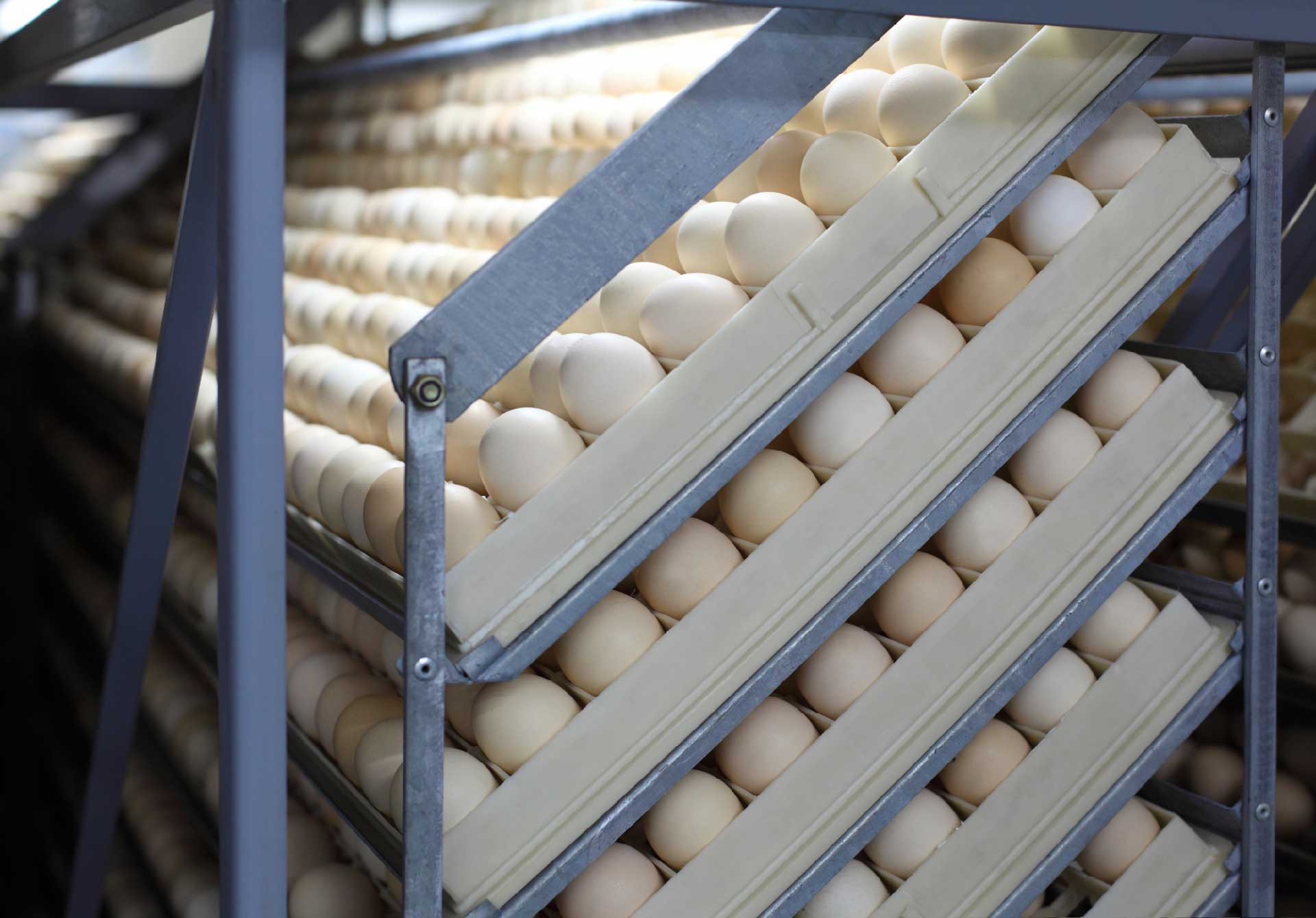 - The eggs are transferred to the farm at the end of incubation shortly before hatching.